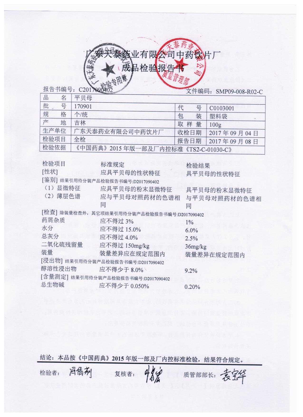 药检报告