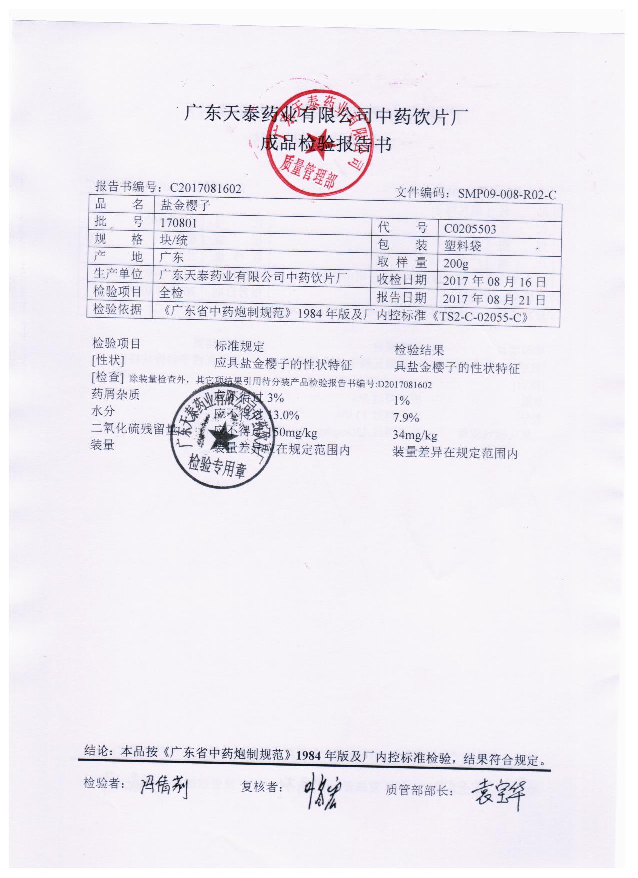 药检报告