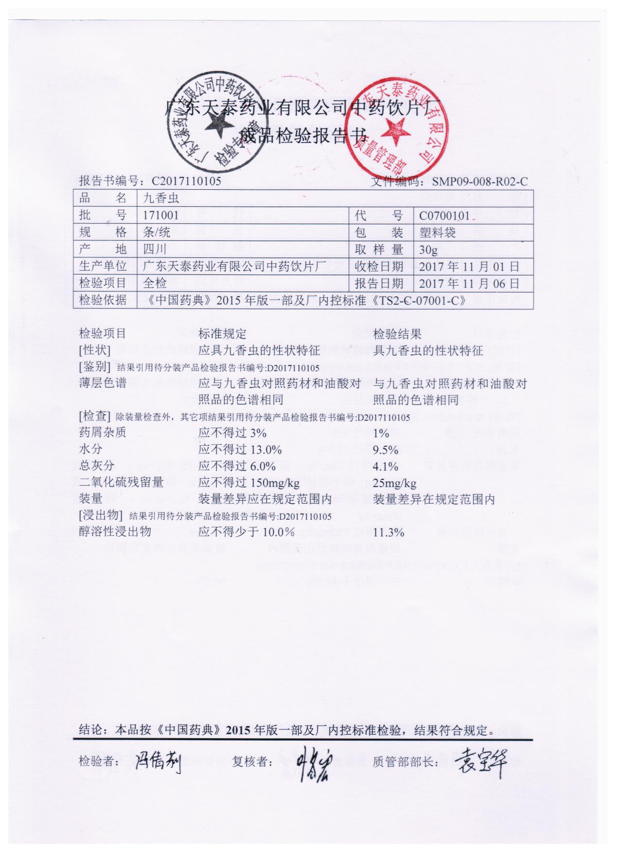 药检报告