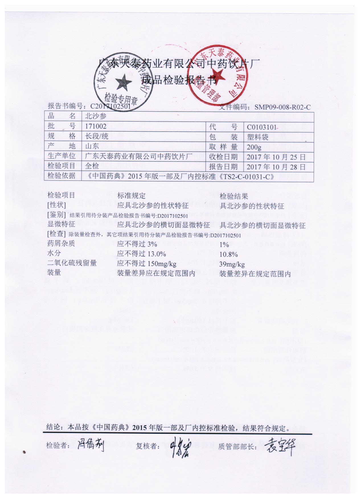 药检报告