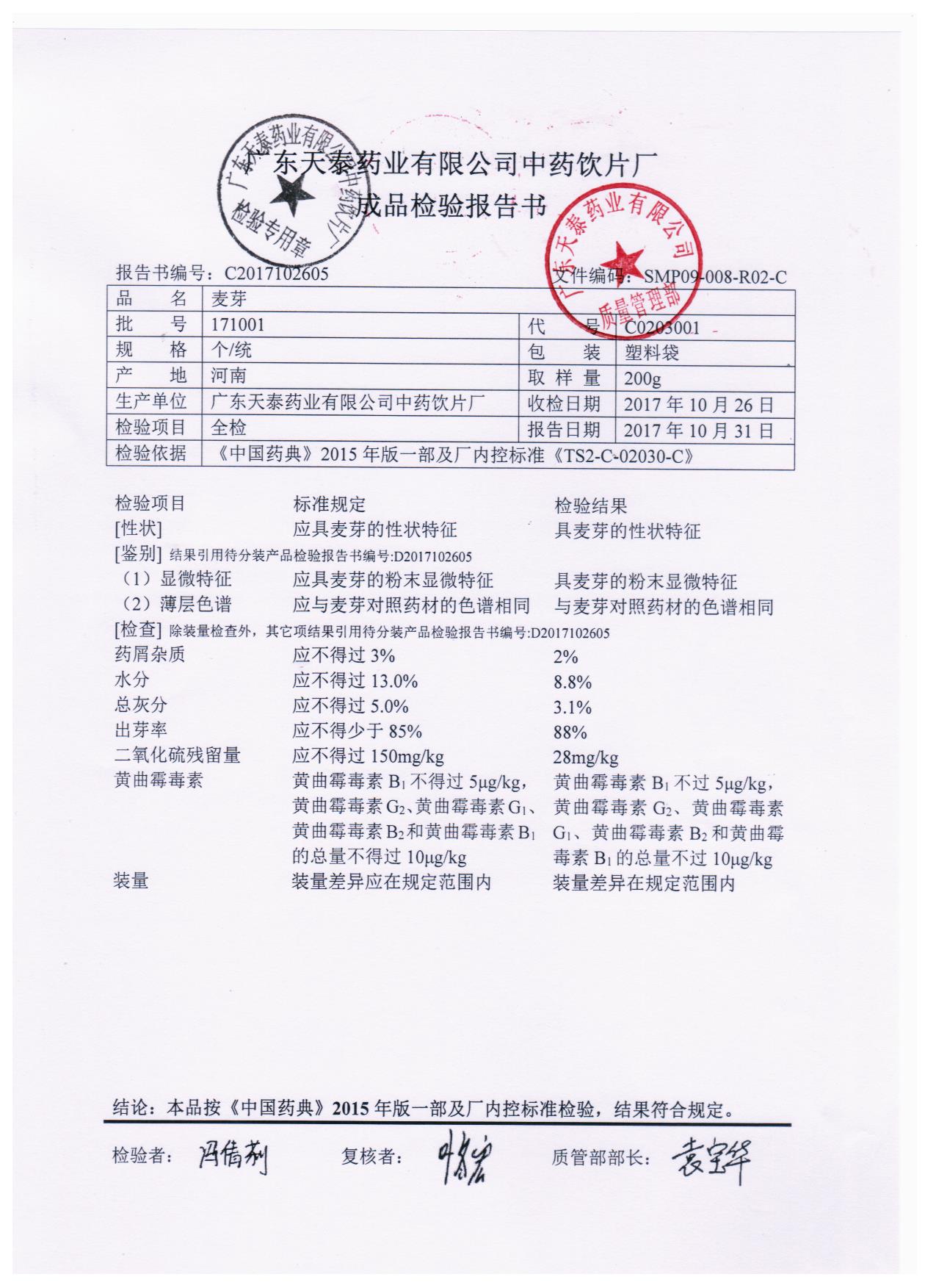 药检报告