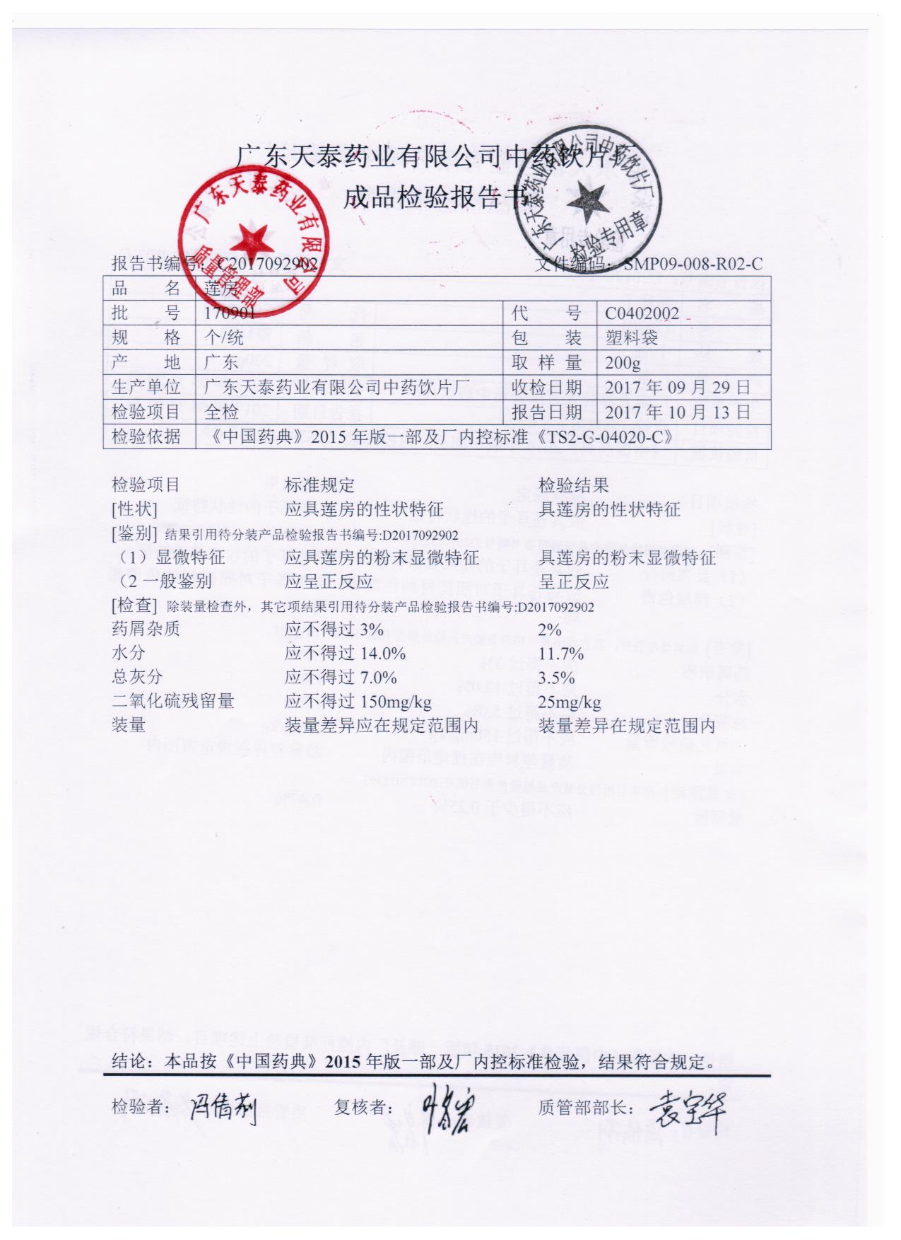 药检报告