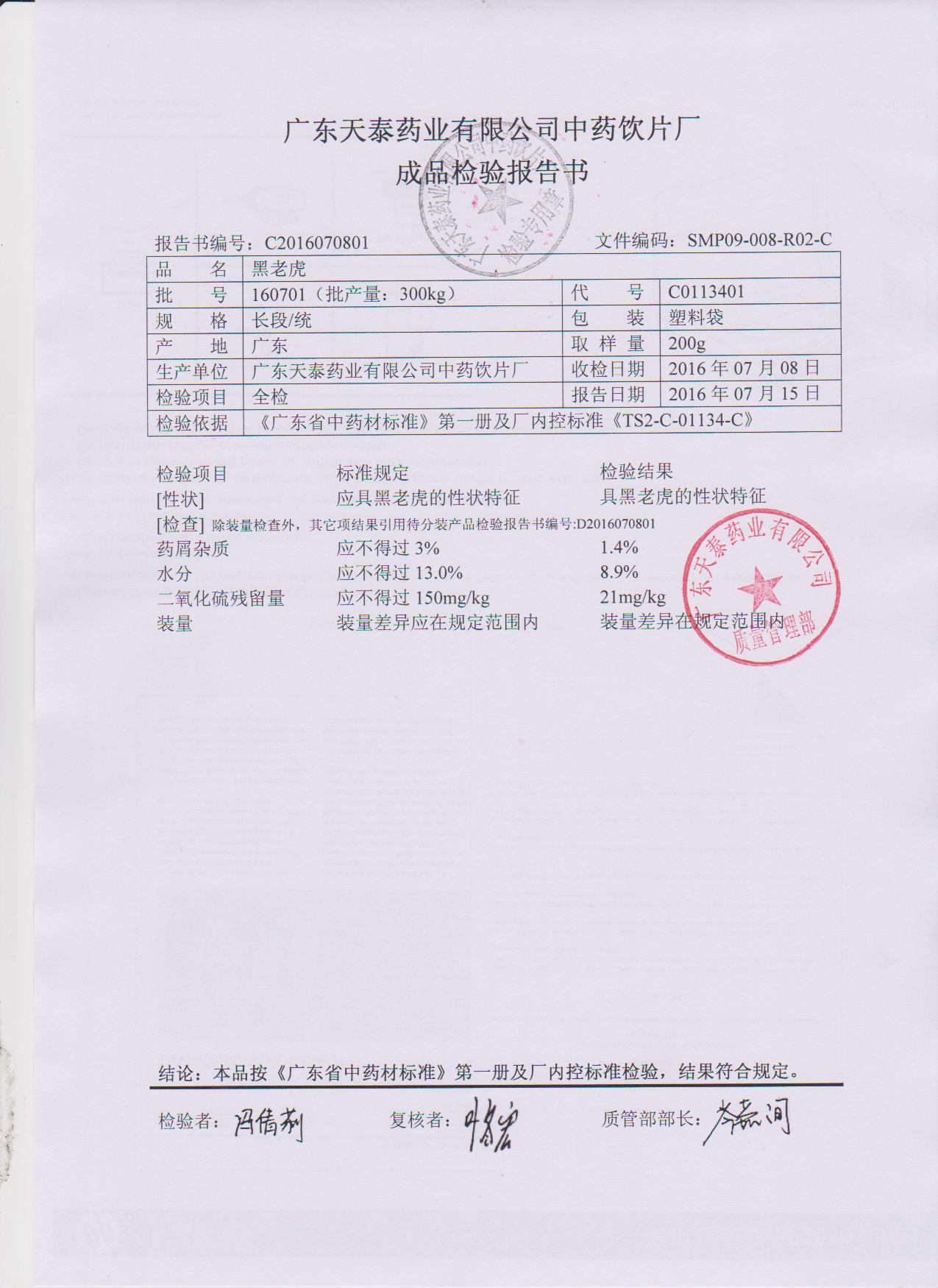 药检报告