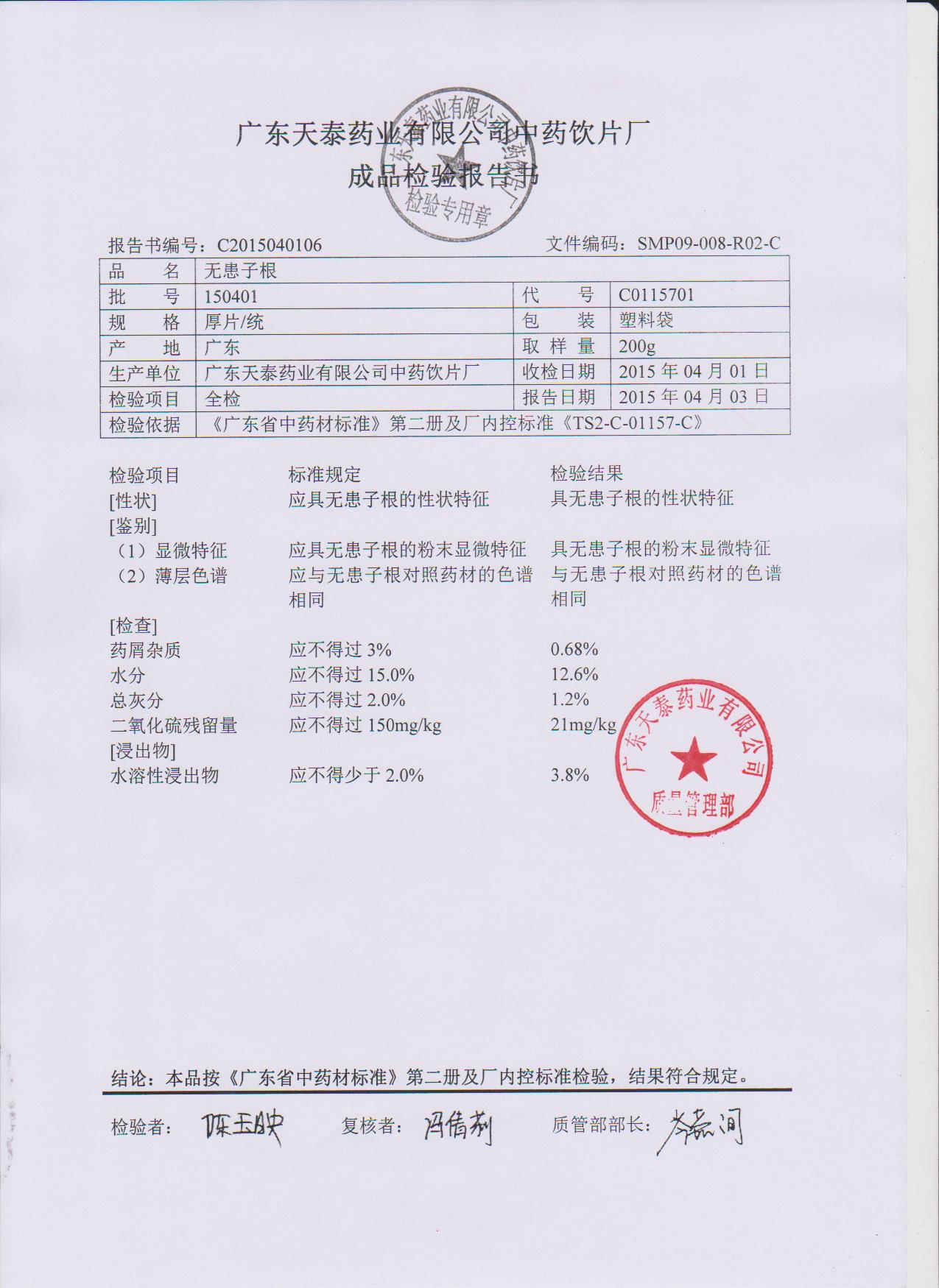 药检报告