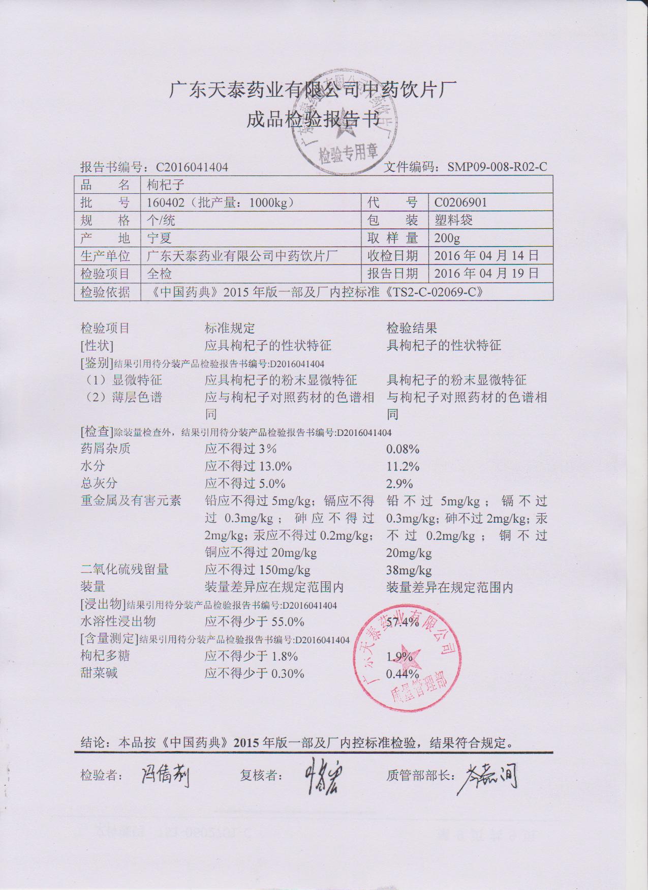 药检报告