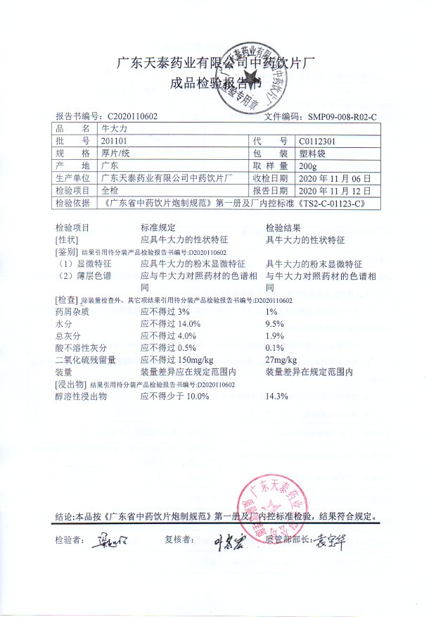 药检报告