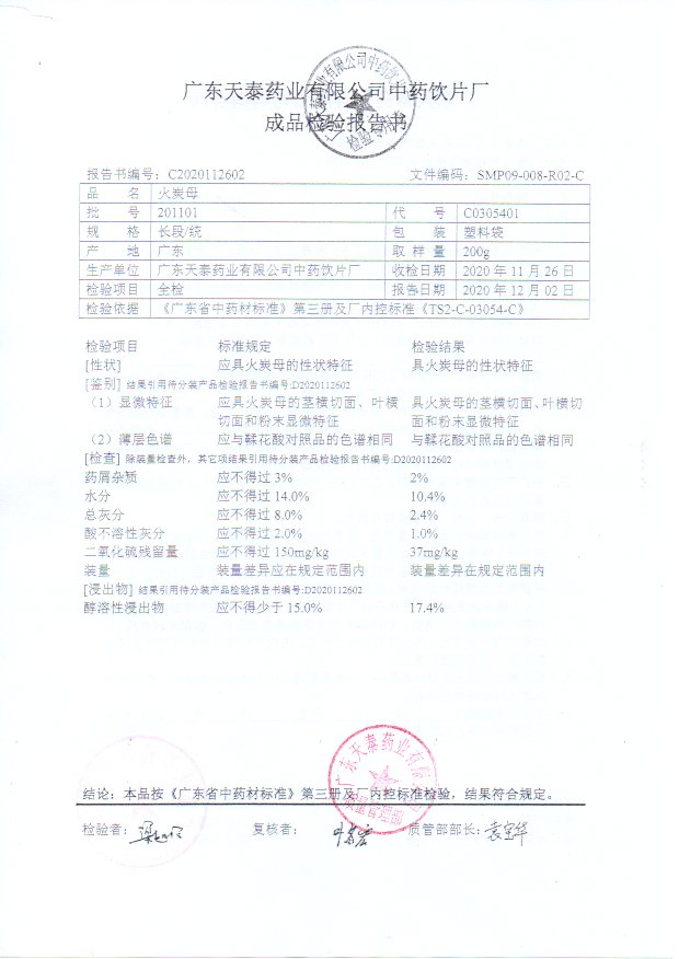 药检报告