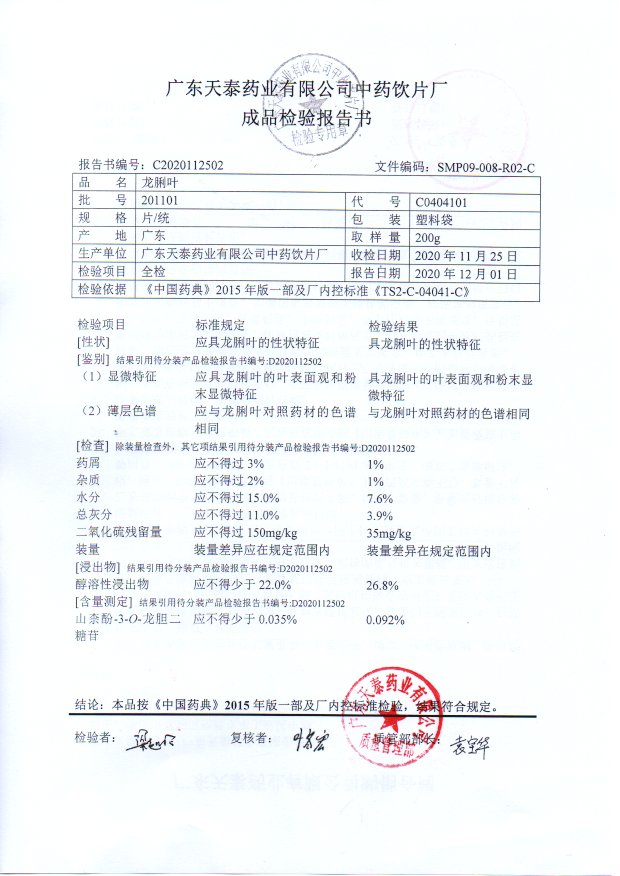 药检报告