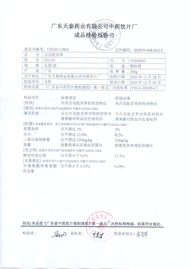 药检报告