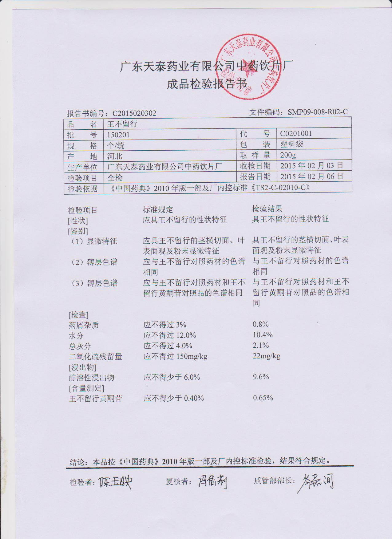 药检报告