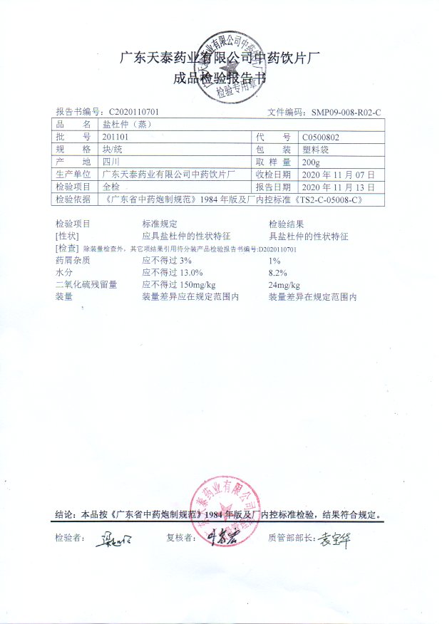 [盐杜仲(蒸)]盐杜仲(蒸)(块/统)