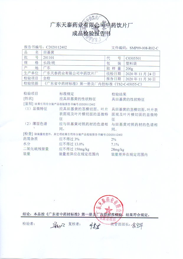 药检报告