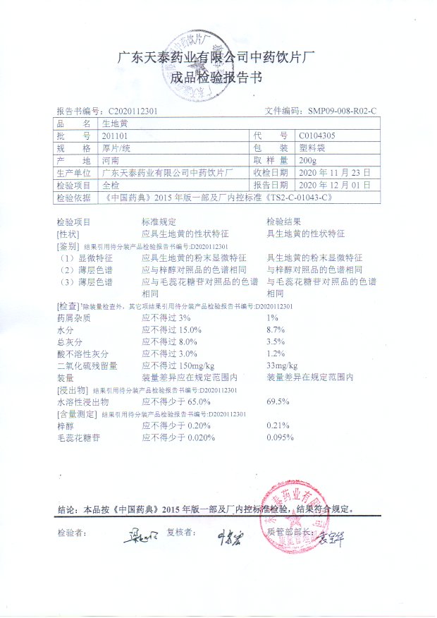 药检报告