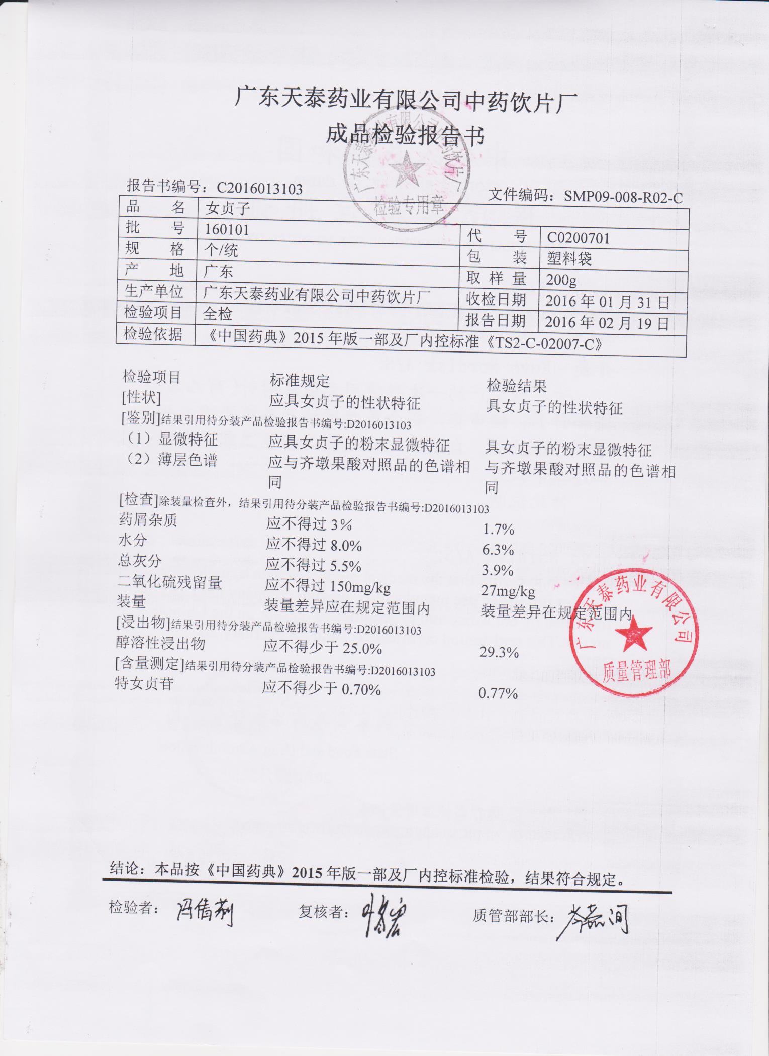 药检报告