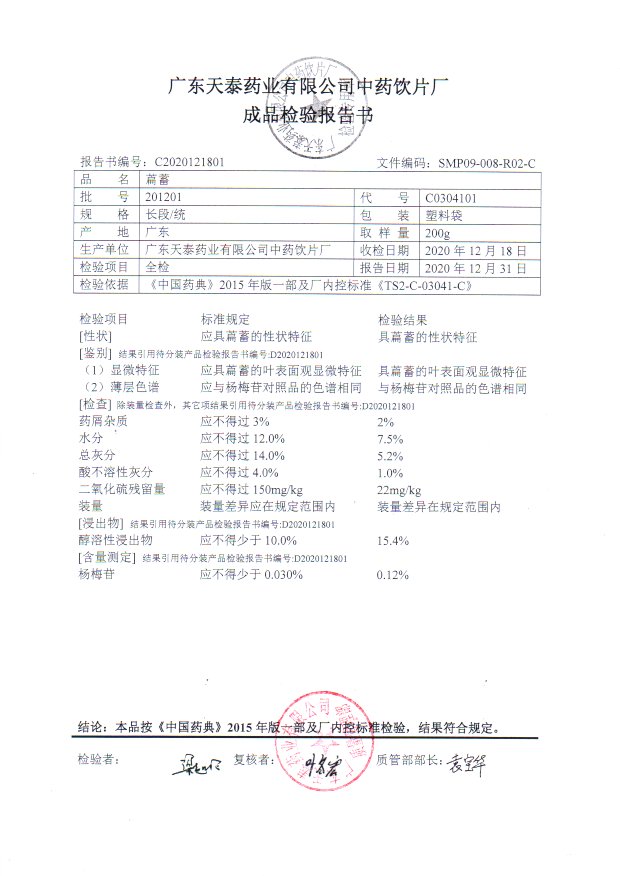 药检报告