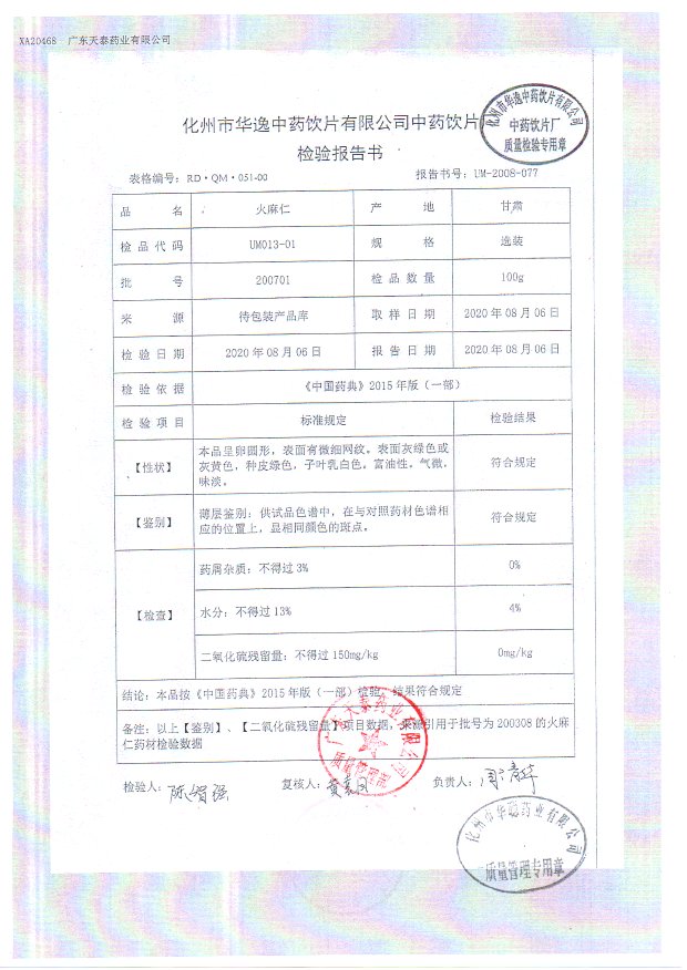 药检报告