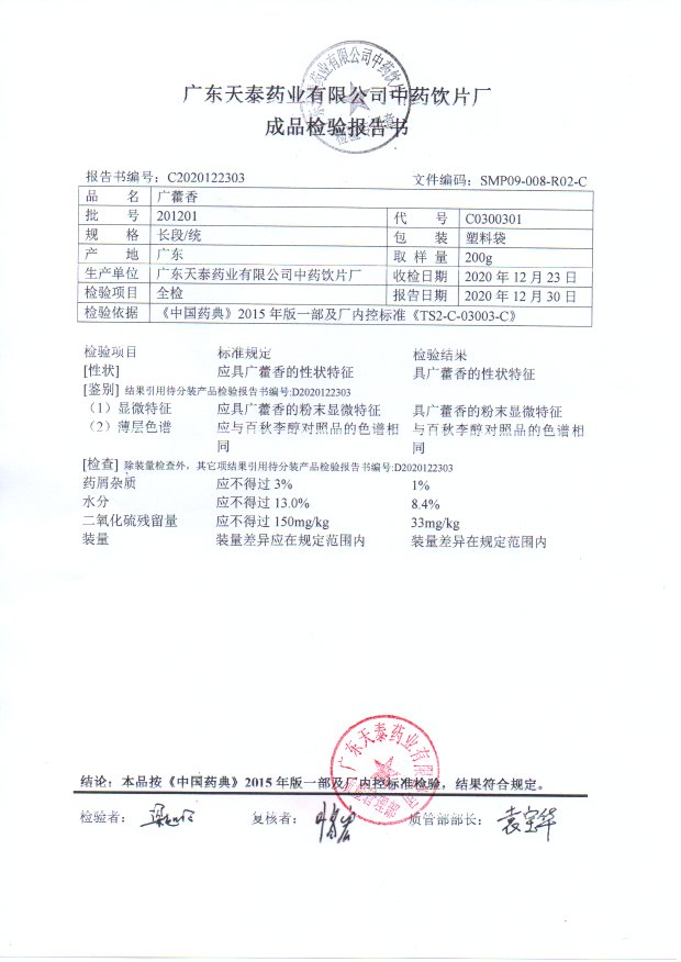药检报告