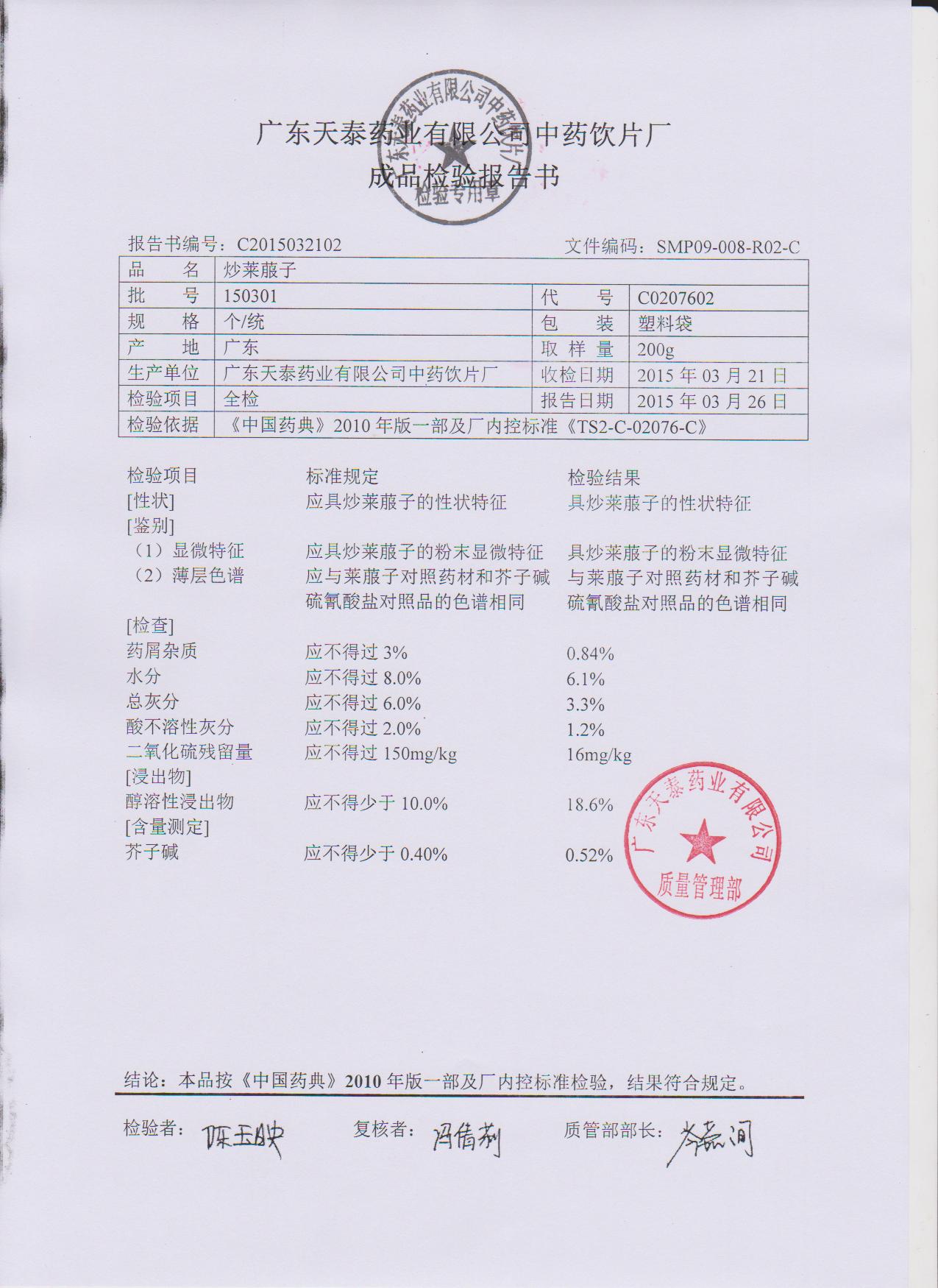 药检报告