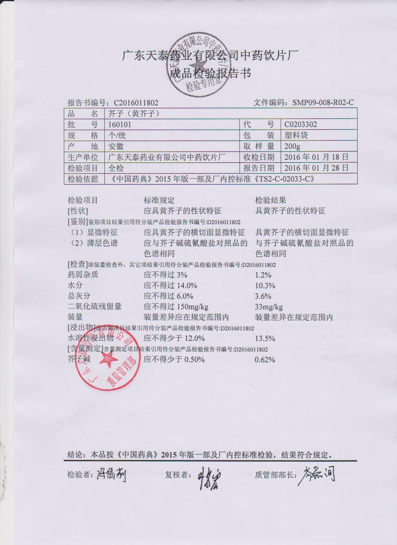 药检报告