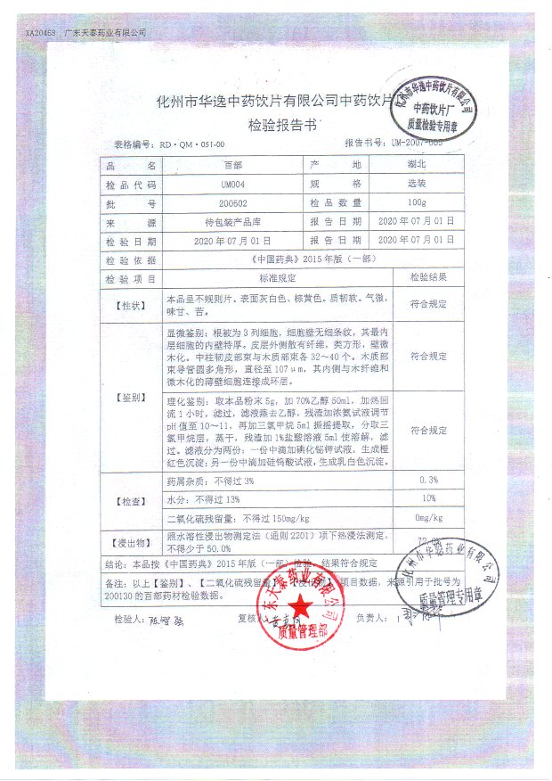 药检报告