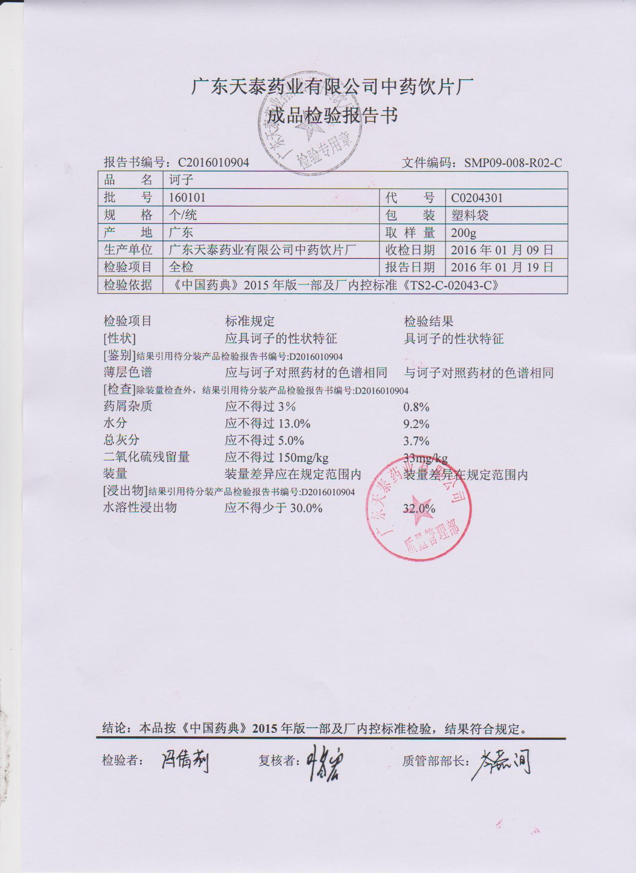 药检报告