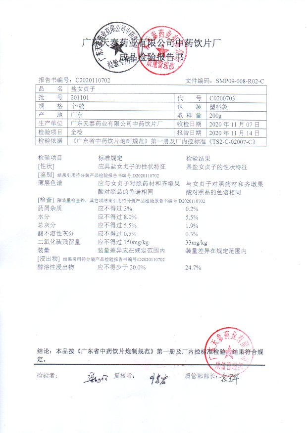 药检报告