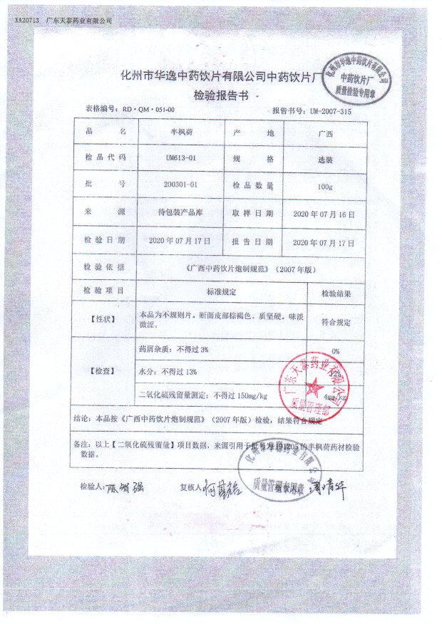 药检报告