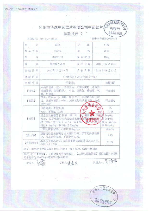 药检报告