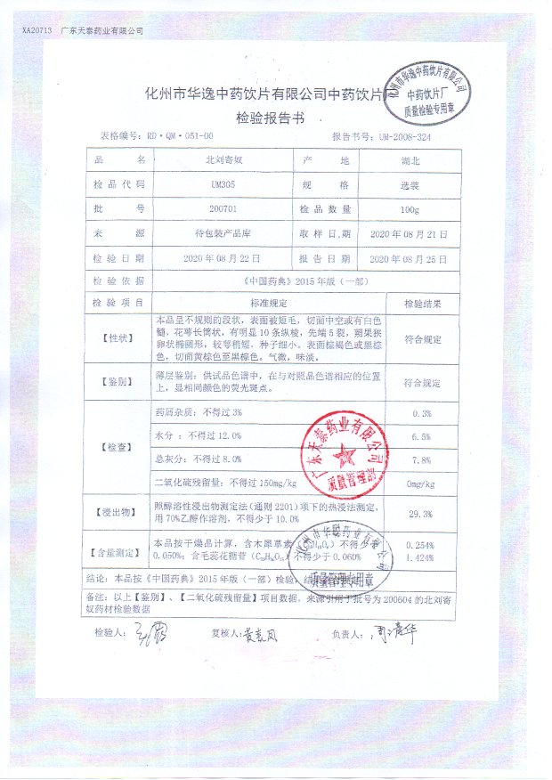 药检报告