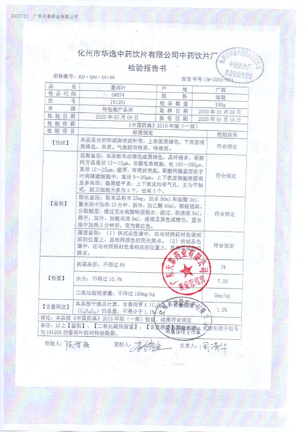 药检报告