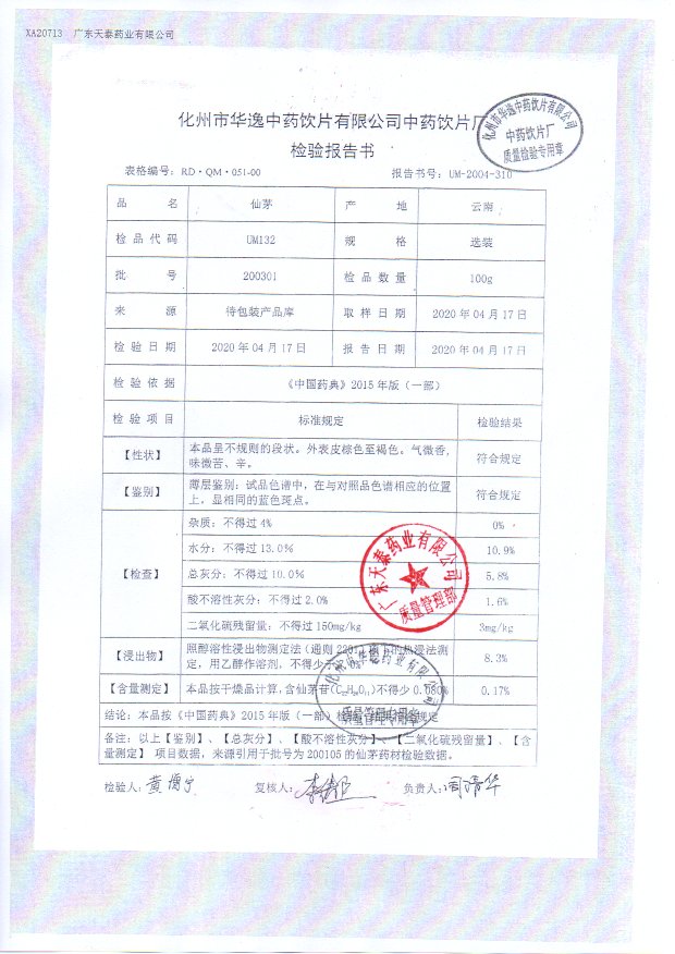 药检报告