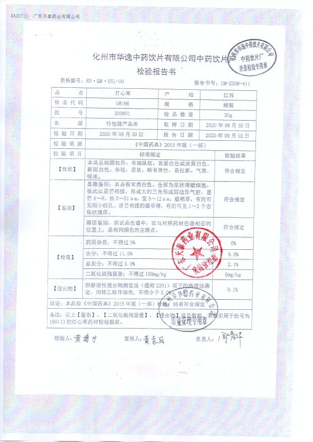 药检报告