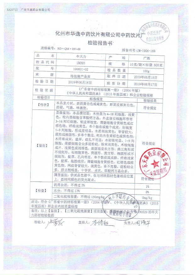 药检报告