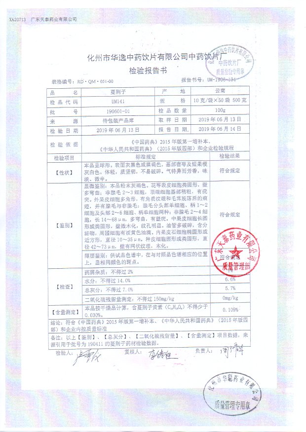 药检报告