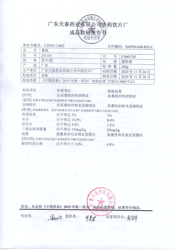 药检报告