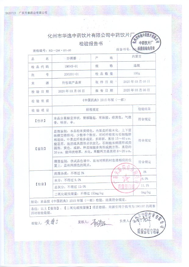 药检报告