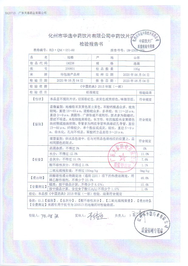 药检报告