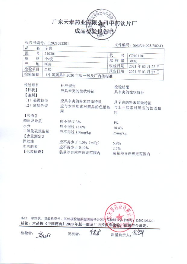 药检报告
