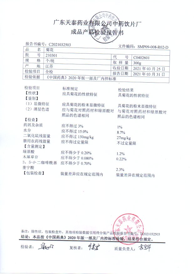 药检报告