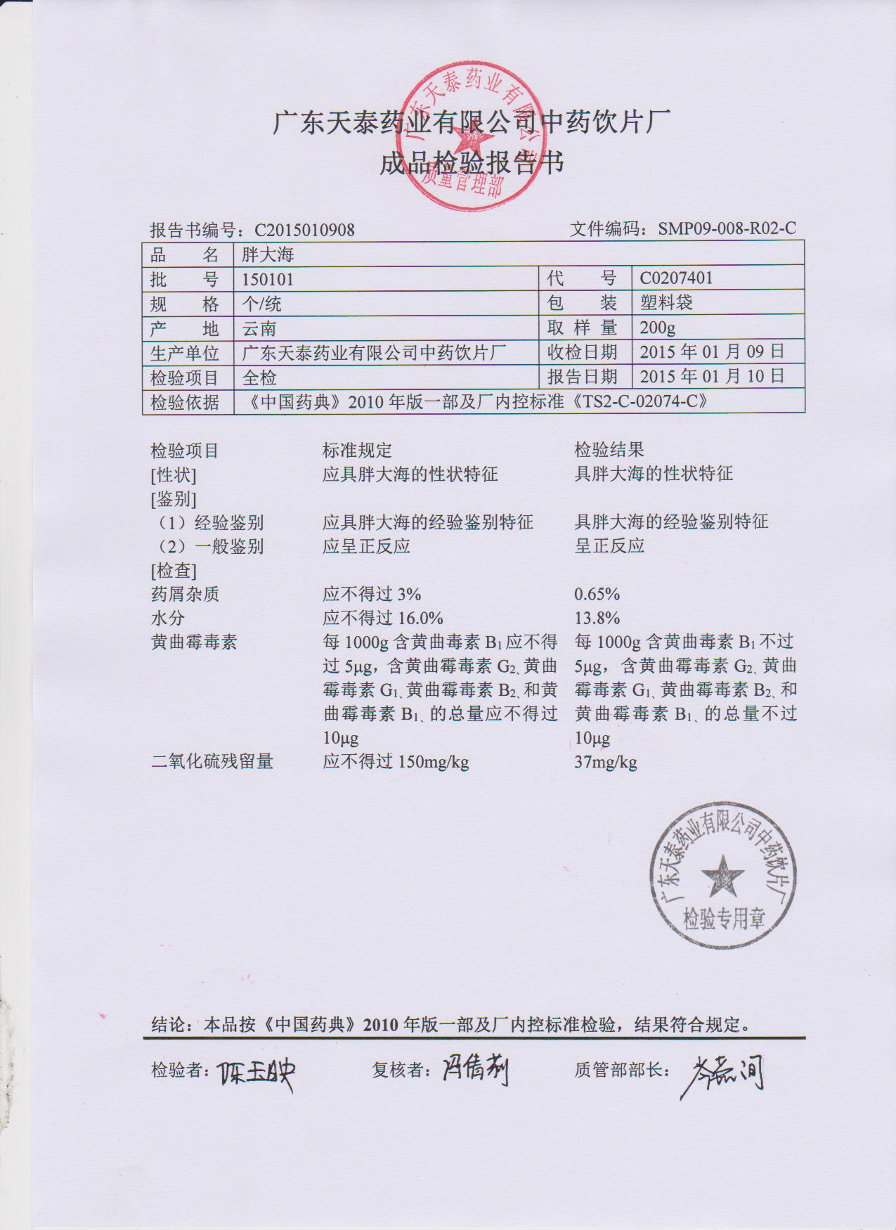 药检报告