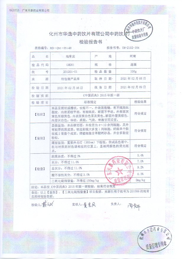 药检报告