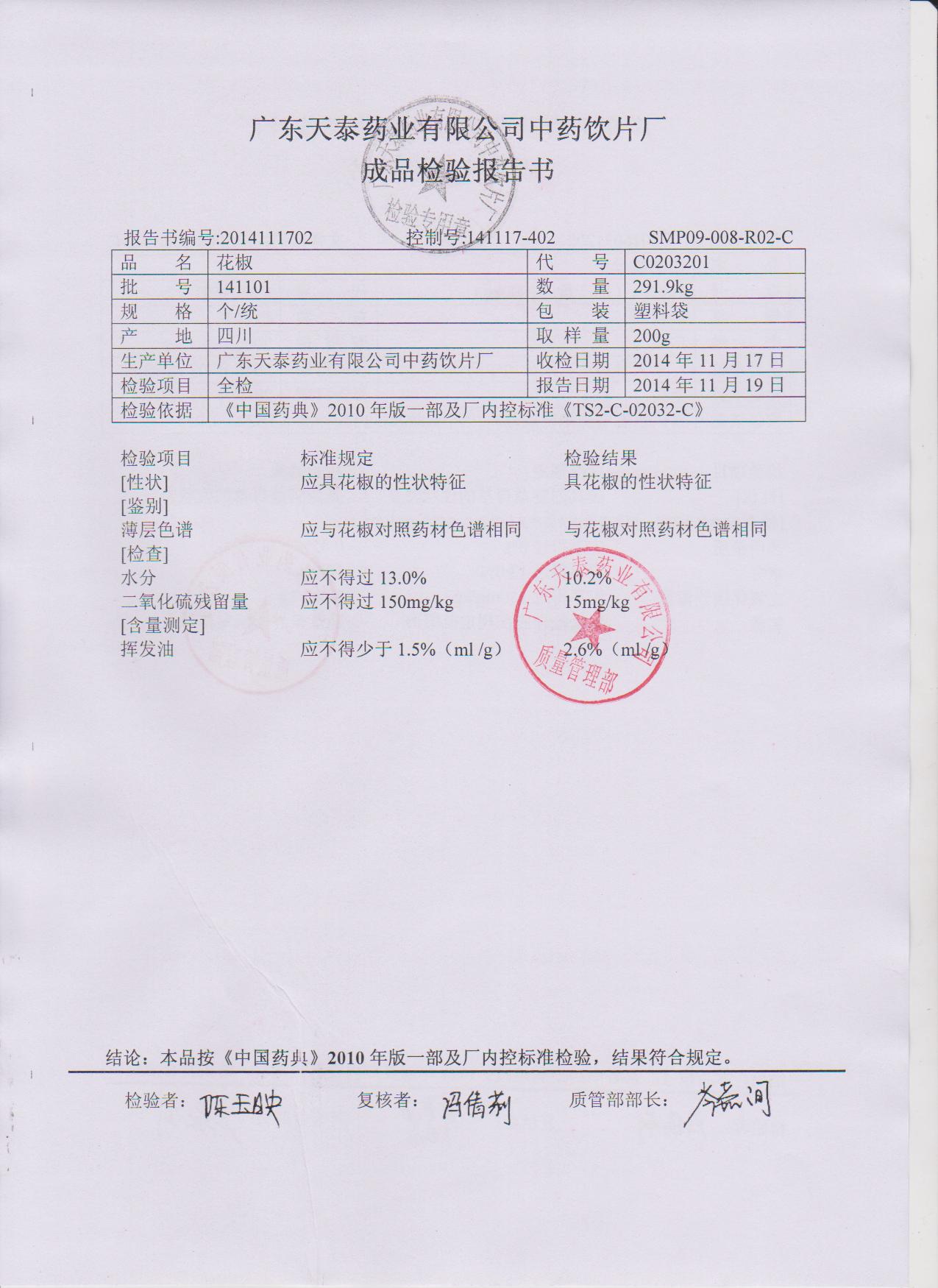 药检报告