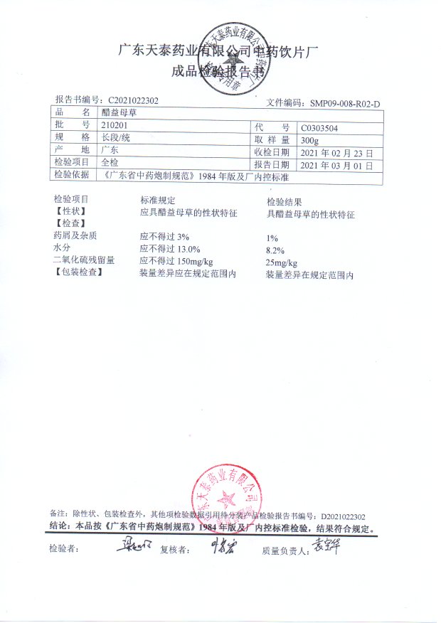 药检报告