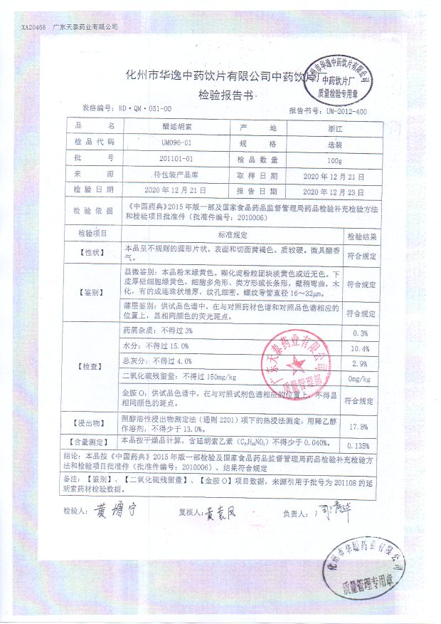 药检报告