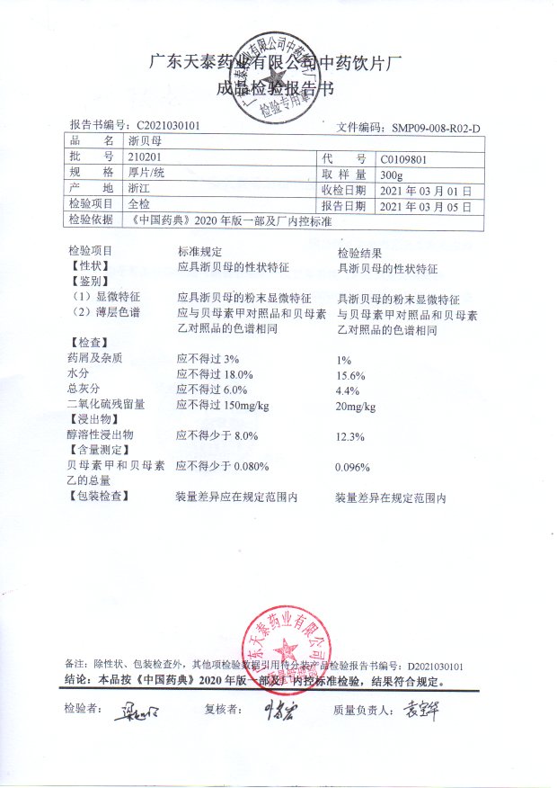 药检报告