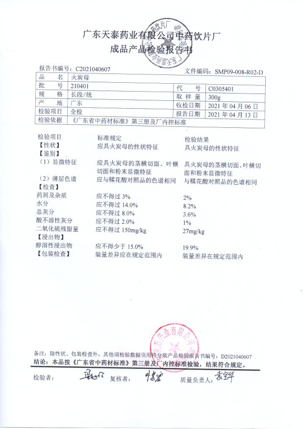 药检报告