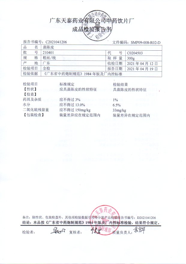 药检报告