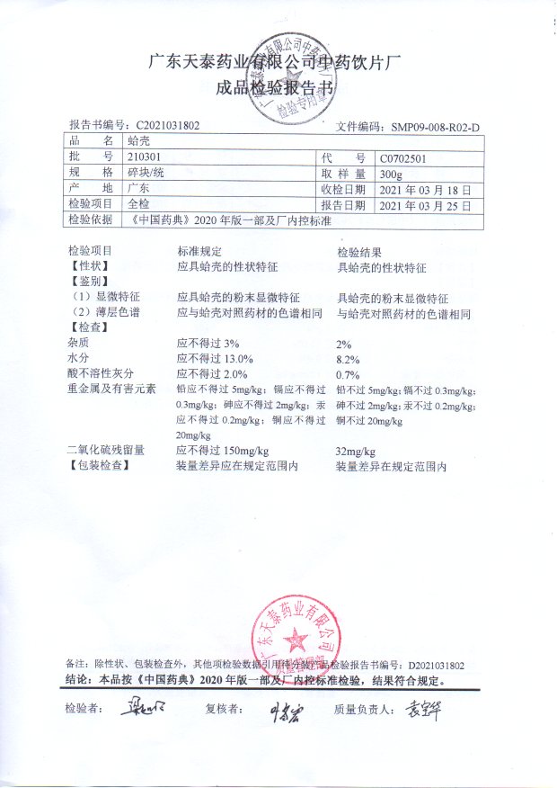 药检报告