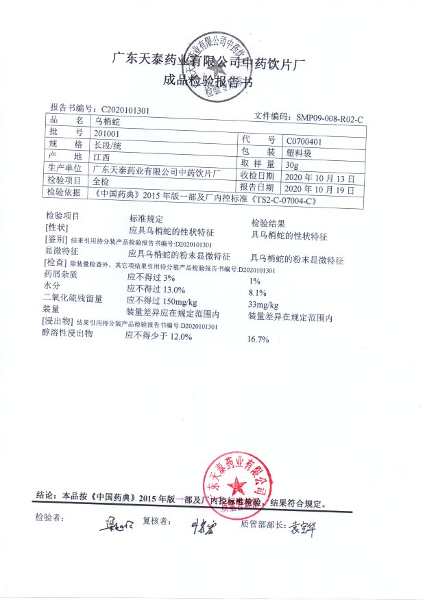 [乌梢蛇]乌梢蛇(长段/统)