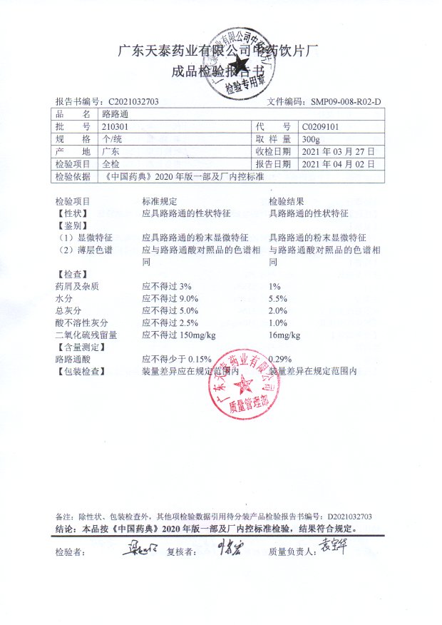 药检报告